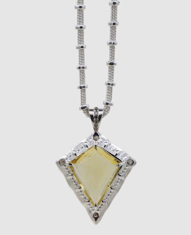 Collier BAYA en argent orné d’une citrine taillée et de délicats diamants,