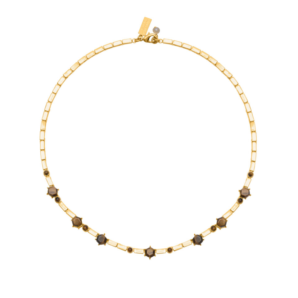 Un bijou en laiton plaqué or 18 caratssublimé par une pierre d’Œil de tigre naturelle pour un éclat chaleureux et authentique.