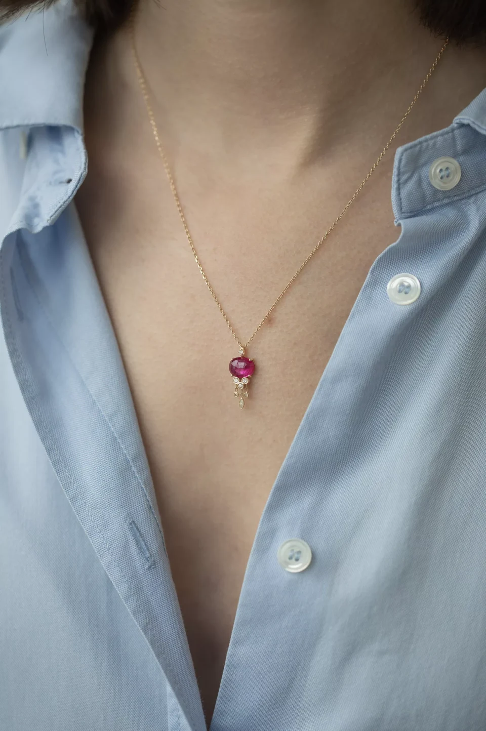 Collier médaillon Céline Daoust en or jaune clair 14K avec lapis-lazuli et diamants, pendentif ouvrable et design unique au contact de la peau.