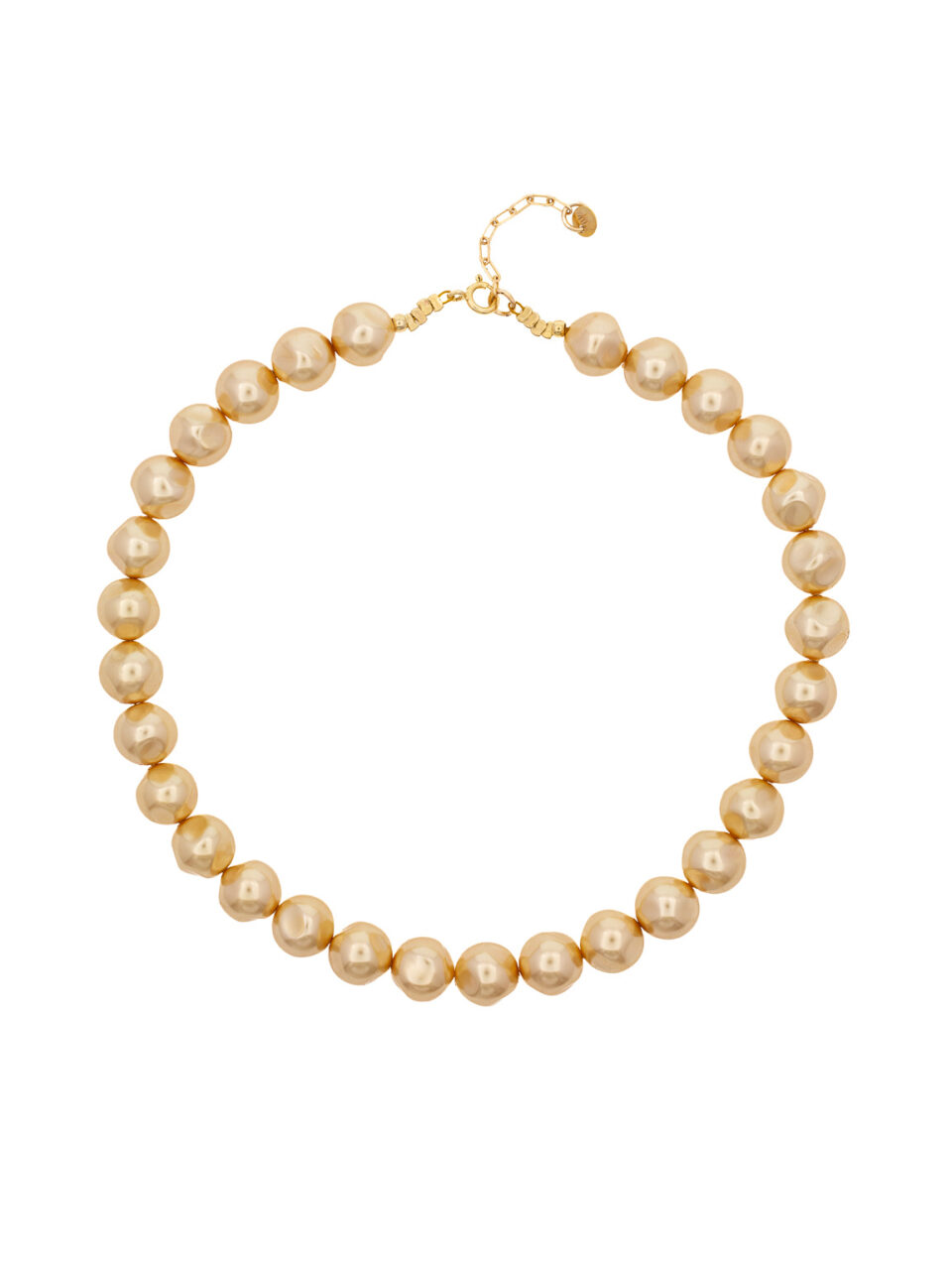 Collier ras du cou Luj Paris plaqué en or 18 carats et orné de perles de verre irrégulières nacre dorée, fait main à Paris pour un style élégant et lumineux.