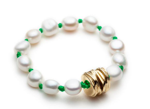 Boucles d’oreilles Luj Paris longues en laiton argenté ornées de perles de verre nacre dorée et d’un zircon faites main à Paris pour une touche d’éclat raffinée.
