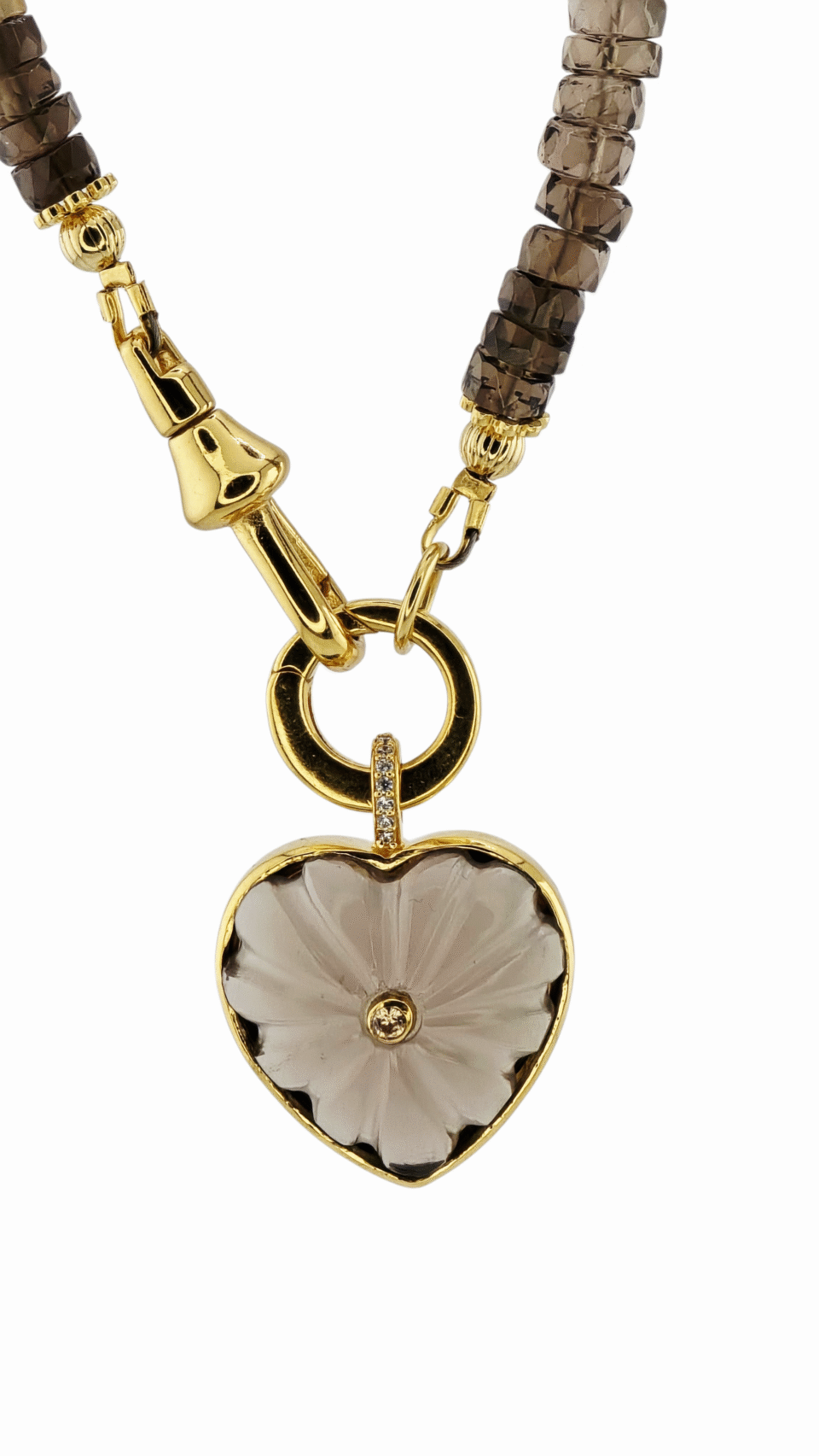 Collier Naëlle en quartz fumé facetté fil avec pendentif cœur serti de zircons en laiton plaqué or.