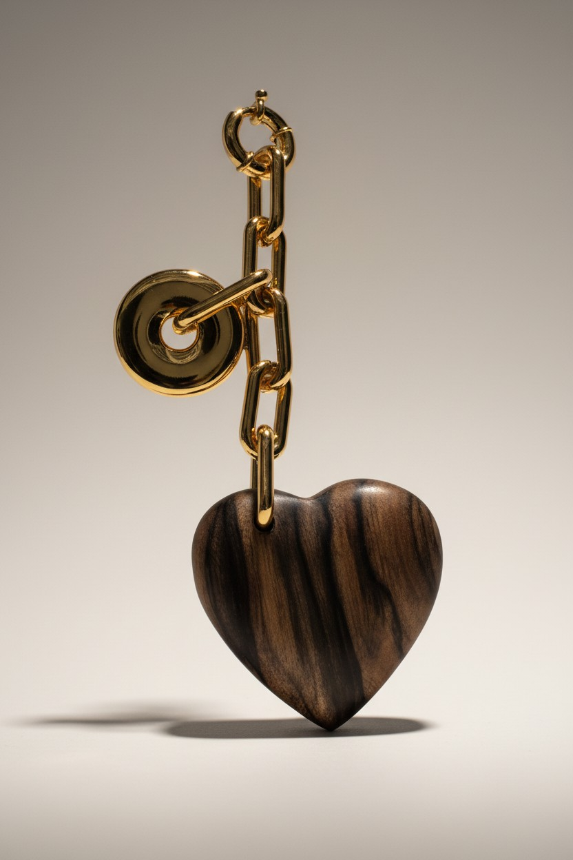 Porte-clés alliant un cœur en bois naturel et un disque doré en plaqué or 24K. Un accessoire à la fois chaleureux et élégant, idéal pour personnaliser vos clés ou offrir.