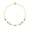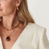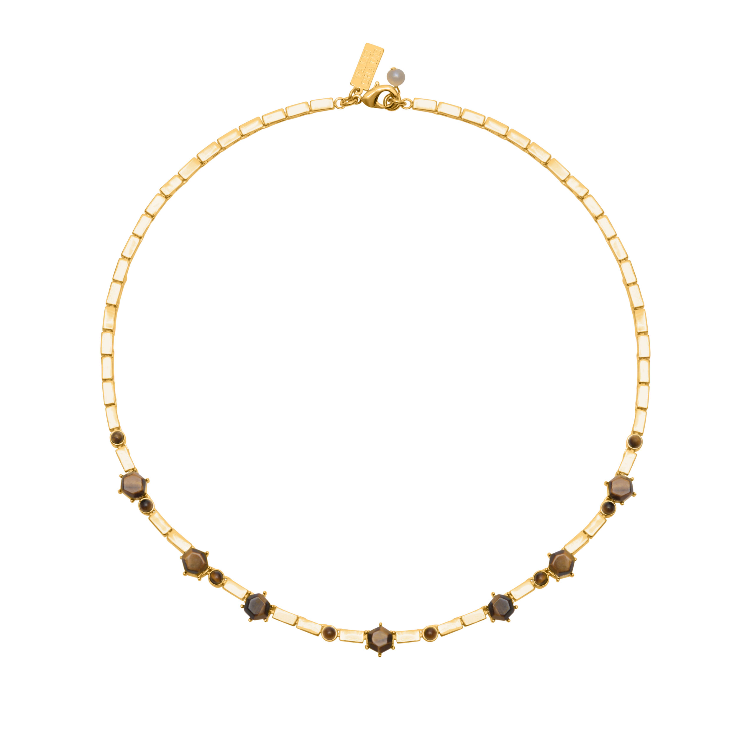 Chic et expressif, ce ras-du-cou révèle l’éclat chaleureux de l’œil-de-tigre, mis en valeur par des détails dorés et une perle d’eau douce discrète.