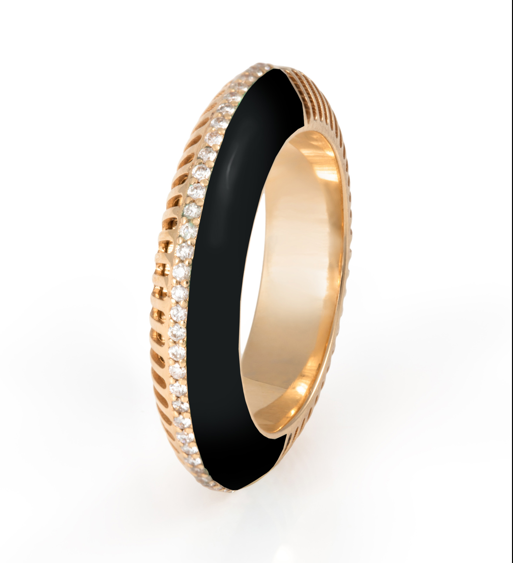 Affirmez votre style avec cette bague d’exception en or jaune 18 carats, alliance parfaite entre modernité et raffinement intemporel . Son design graphique et audacieux met en valeur un onyx noir profond ,symbole de force et d’élégance, sublimé par l’éclat délicat des diamants  qui apportent une touche de lumière précieuse. Le contraste entre l’or jaune lumineux et l’onyx intense crée une pièce au caractère unique,à la fois chic et contemporaine.