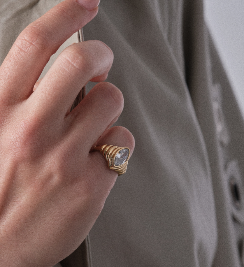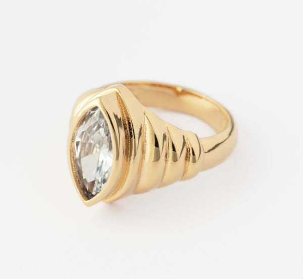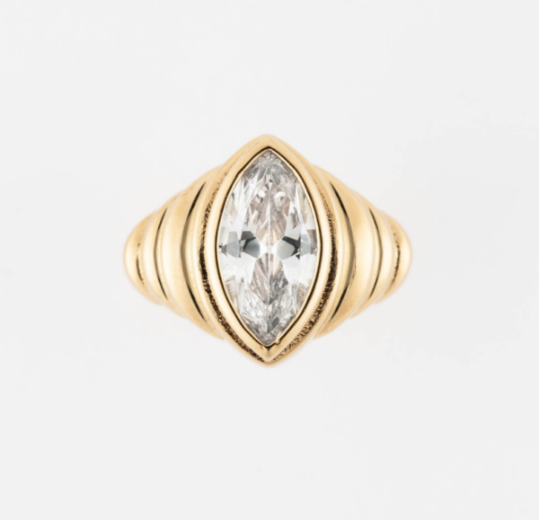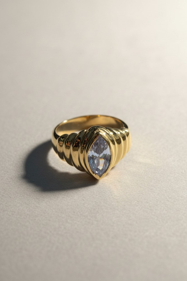 Bague SIGAL marquise striée ornée d’un centre en oxyde de zirconium.