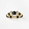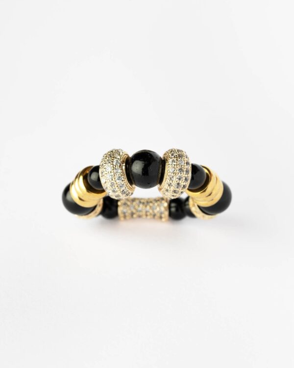 Élégante et envoûtante, la bague Nefertiti Noir associe le laiton plaqué or 24 carats et l’argent dans une création raffinée sublimée par des perles en agate et des strass en oxydes de zirconium. Son design sculptural capte la lumière tout en jouant sur le contraste profond du noir et de l’or. Signée Sigal Paris, cette pièce unique révèle une féminité puissante et un éclat moderne d’une rare intensité.
