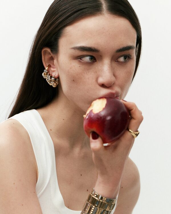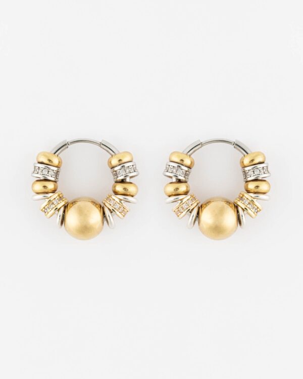 Audacieuses et lumineuses, les boucles d’oreilles Bubble Shiny mêlent laiton plaqué argent et or 24 carats dans un jeu d’équilibre entre brillance et modernité.
