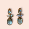 Les boucles d’oreilles AVALON sont des pièces fortes où la pierre s’impose avec élégance,de larges cabochons de labradorite irisée, délicatement suspendus, sont montés sur une structure en laiton plaqué or 18 carats garantissant un éclat durable.