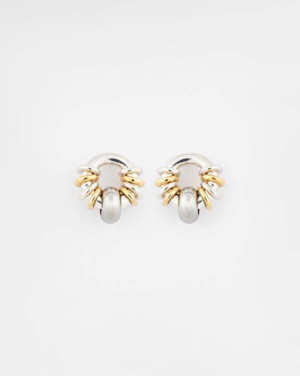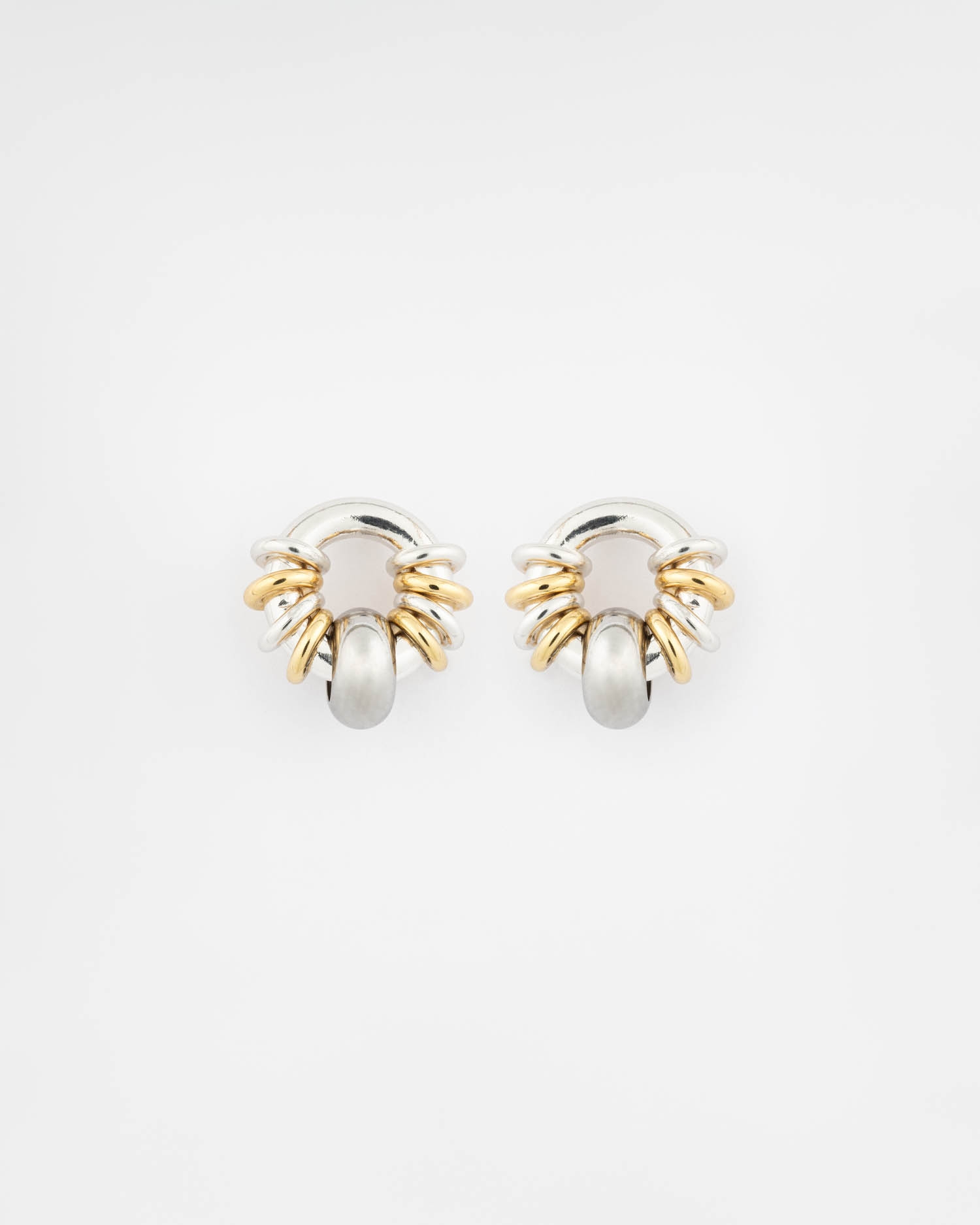 Subtiles et modernes, les boucles d’oreilles Donut Baby Argent associent avec harmonie des anneaux dorés sur une base en laiton plaqué argent et or 24 carats.