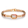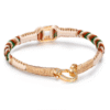 Bracelet fin en fil brass tressé, entrelacé de fil vanille pin et noisette Il est orné d’un cabochon en Vermeil serti de Saphirs rainbow et d’un Cristal central. Le fermoir est serti de ravissants diamants.