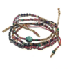 Assemblage de perles plaquées or et de variations de pierres semi-précieuses, ces bracelets sont entièrement montés à la main. Chaque pièce est unique, même si proche du modèle présenté, ils ne sont jamais pareils et cela fait tout leur charme. C’est un des plus vieux modèles iconiques de la maison Gachon Pothier. Les plus longs à réaliser certes mais ils habillent le poignet comme nul autre. On a l’impression d’en avoir plusieurs en même temps et il se fond sur votre peau pour ne jamais la quitter! Vous pouvez le porter en bracelet ou l’enroulez autour du cou ou de votre cheville. Dimensions : 73 cm / S’enroule autour du poignet environ quatre fois. Ajuster et nouer selon vos envies.
