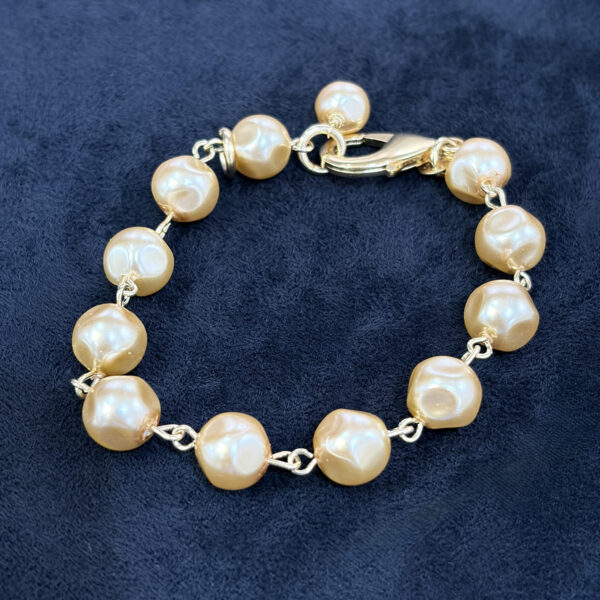 Élégant et lumineux, le bracelet Coco marie la douceur des perles de verre nacrées dorées à la brillance subtile du laiton argenté. Son contraste délicat apporte une note de raffinement et de modernité à chaque poignet.