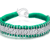 Bracelet en fil de coton tressé vert, décoré d’un motif en argent 925 et serti d’une multitude de diamants. Fil de coton, argent 925 et diamants