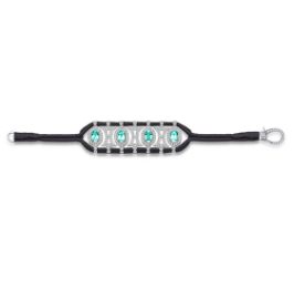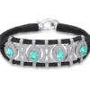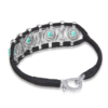 Bracelet ajouré en fil de coton tressénoir décoré d’une structure en argent 925 entièrement pavée de moissanites et rehaussée de Topazes bleu swissovales.