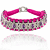 Bracelet en fil de coton tressé de couleur Candy, décoré d’un motif en argent 925 et serti d’une multitude de diamants. Il est décoré de splendides améthystes.