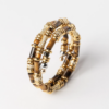 Ce bijou raffiné associe avec subtilité des perles en oeil de tigre aux reflets envoûtants, des perles plates dorées lumineuses
