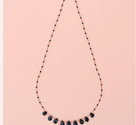 Le collier 9 Gouttes déploie neuf briolettes précieuses , aux reflets profonds et intenses.