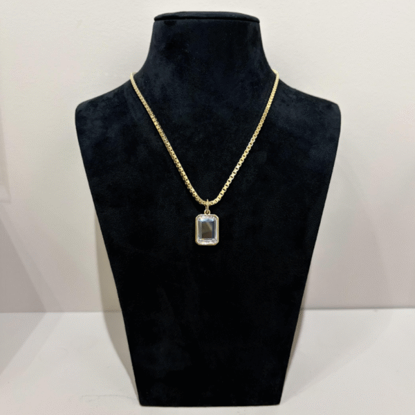 Élégant et contemporain, le collier brillant carré large met en lumière un zircon étincelant suspendu à une fine chaîne en laiton plaqué or. Son design épuré capture la lumière et sublime le cou d’un éclat raffiné et intemporel.