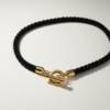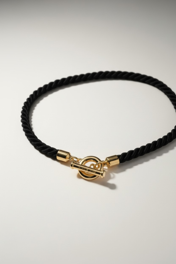 Collier cordon au design minimaliste, sublimé par un fermoir en T plaqué or 24K. Élégant et moderne, il se porte seul ou en accumulation pour un style raffiné au quotidien.