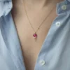 collier méduse en or jaune clair 14 carats de celine daoust avec un rubi et des diamants pendants. la pierre est disponible en gris clair dégradé.