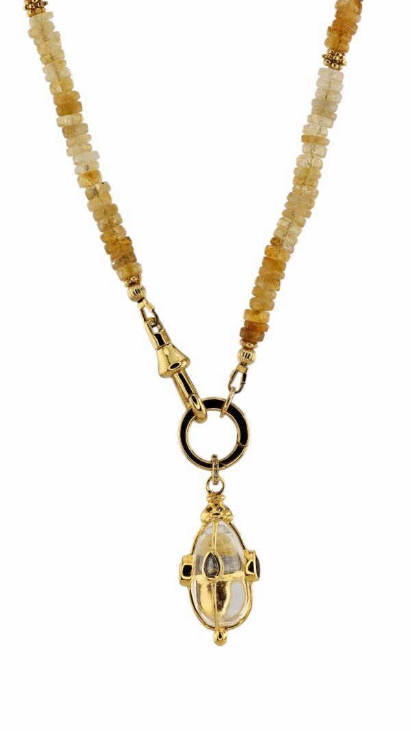Collier Naële composé de pierres naturelles en pierre de citrine enfiler sur un fil résistant , composé de deux fermoir. En laiton plaqué or.