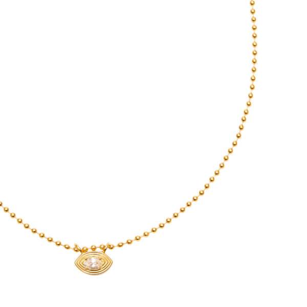 Délicat et lumineux, ce collier met en valeur un pendentif œil protecteur orné de zirconiums pour une brillance éclatante.