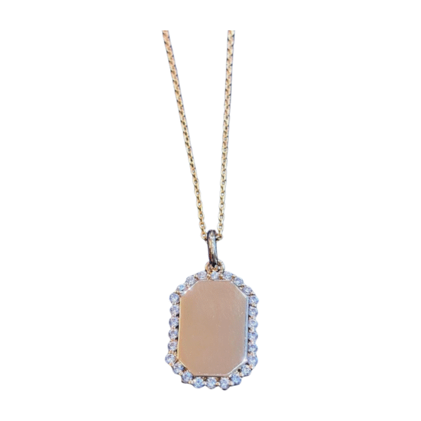 Raffiné et lumineux, ce collier plaque brillant dévoile une médaille délicatement ornée de zircons scintillants, offrant un éclat subtil qui illumine chaque silhouette avec naturel.