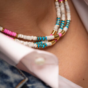 collier ras du cou, rondelles howlite rose pale et rondelles plaqué or.
