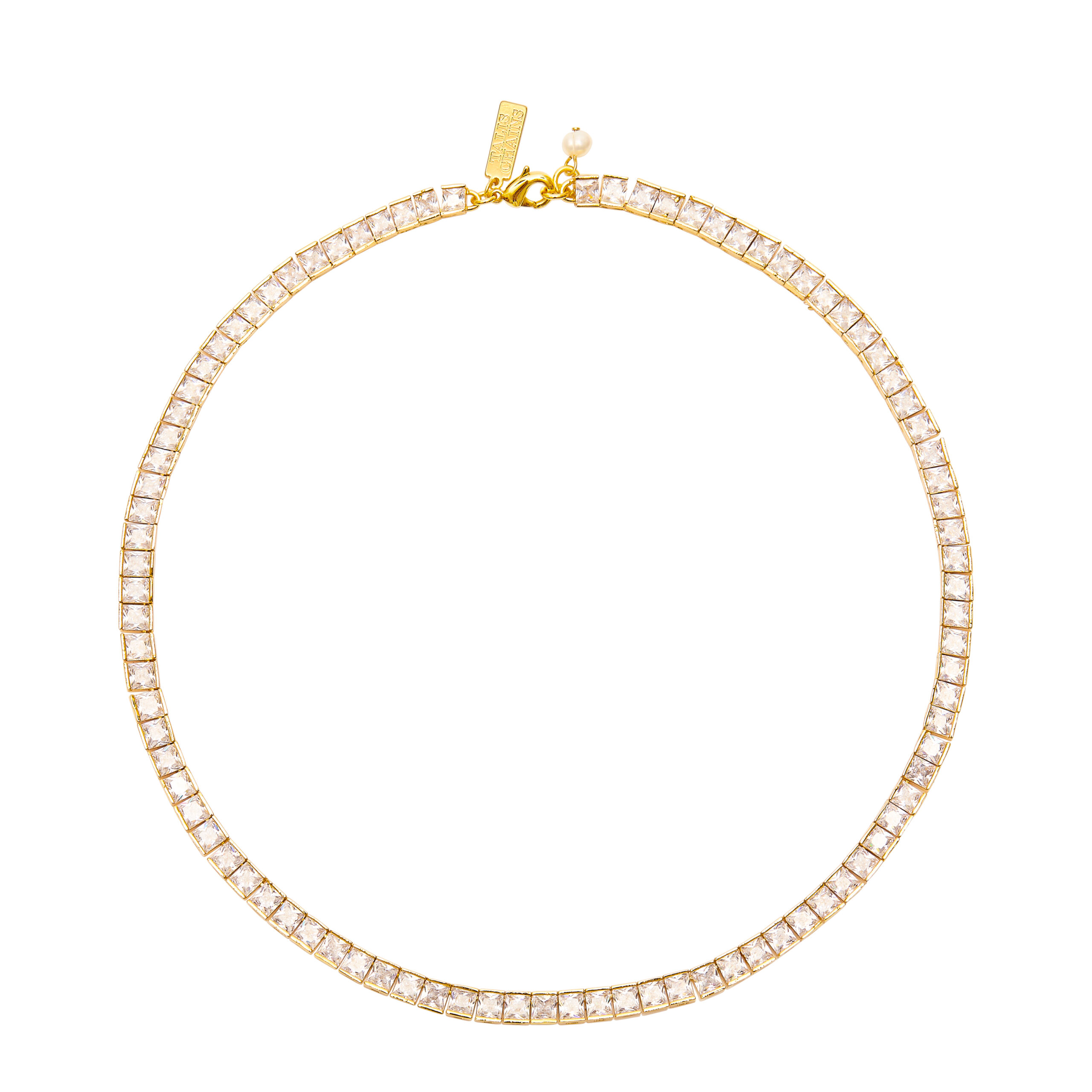 Bracelet en zircon cubique et perle d’eau douce, monté sur laiton plaqué or 18 carats.