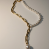 Collier en Y raffiné associant perles et chaîne pour un contraste élégant. Sa fermeture perle apporte une touche originale et délicate, pour un bijou féminin et moderne.