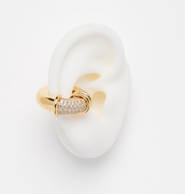 Anneau doré orné d’oxydes de zirconium et d’anneaux dorés soudés.