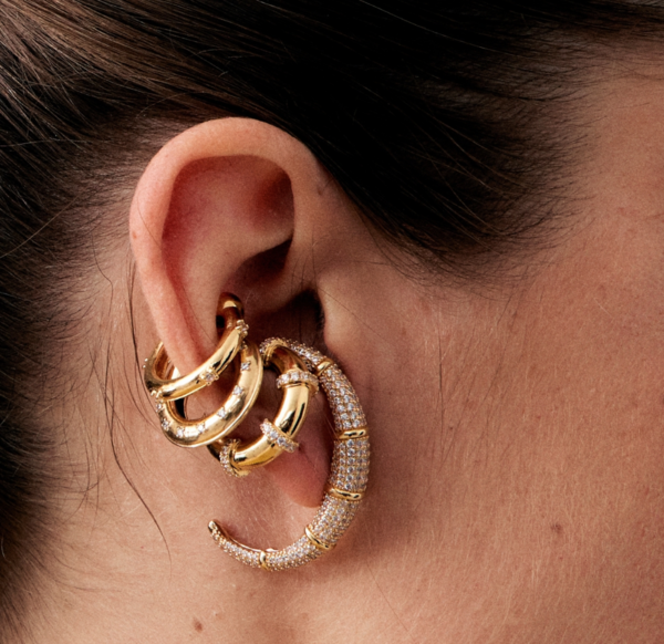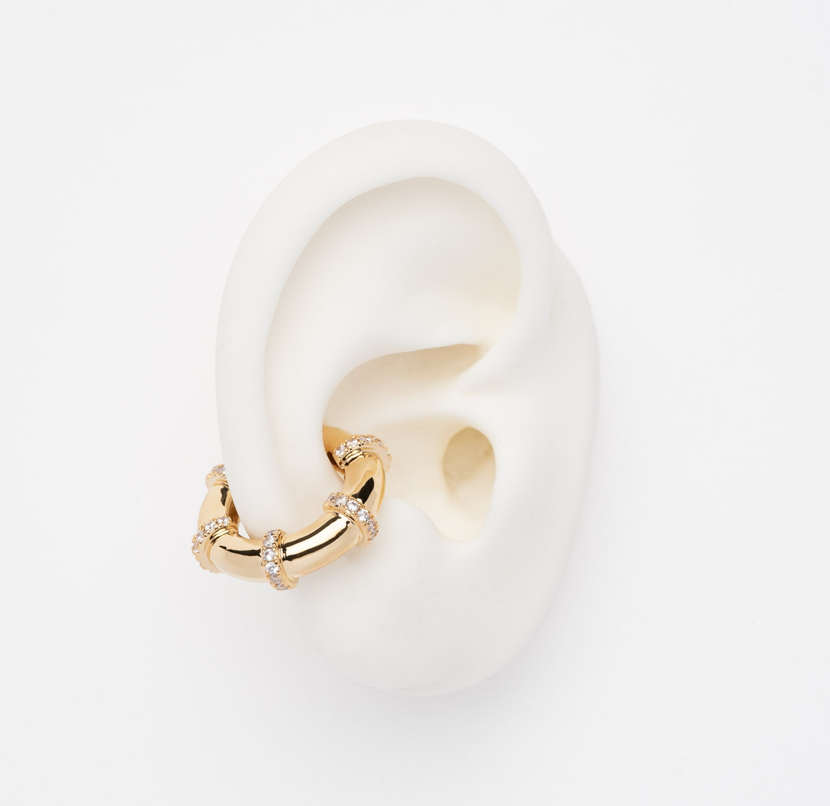 Earcuff doré orné de rangs sertis d’oxydes de zirconium.