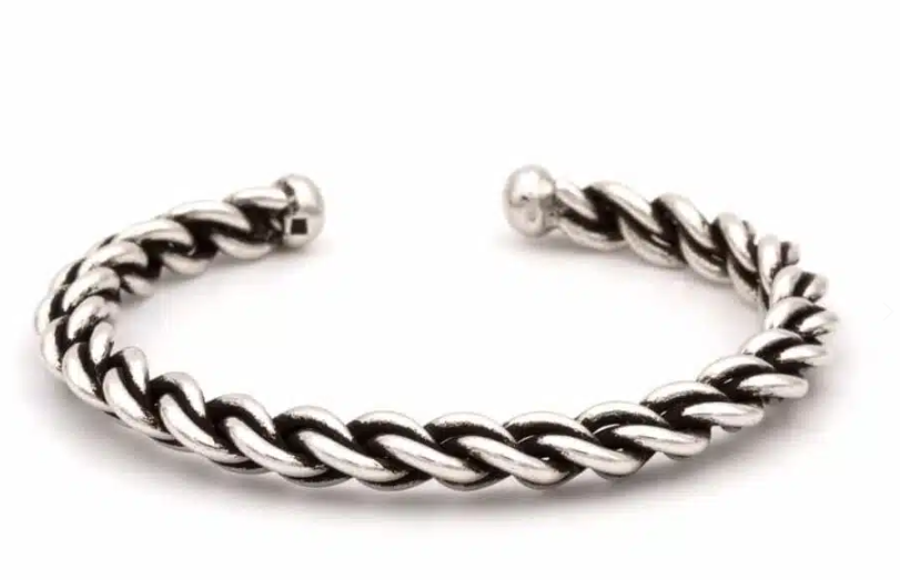 bracelet jonc 3 tresses argenté vieilli.