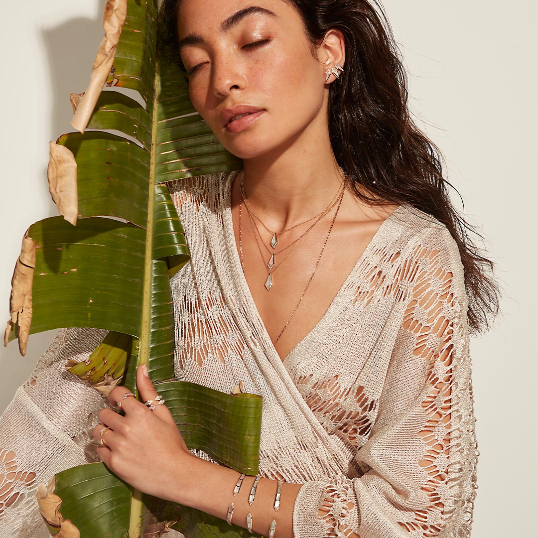 Évoquant la douceur du coquillage Junonia des Maldives, ce pendentif associe l’éclat irisé de la nacre rose à la brillance subtile des diamants totalisant 0,10 ct, de couleur FGH et de pureté VS–SI. Sertie sur une monture en or rose 18 carats d’environ 3,5 g, cette création raffinée allie modernité et féminité. Ajustable sur trois longueurs (41, 43 et 45 cm), elle se porte près du cœur comme un symbole de délicatesse et de lumière.