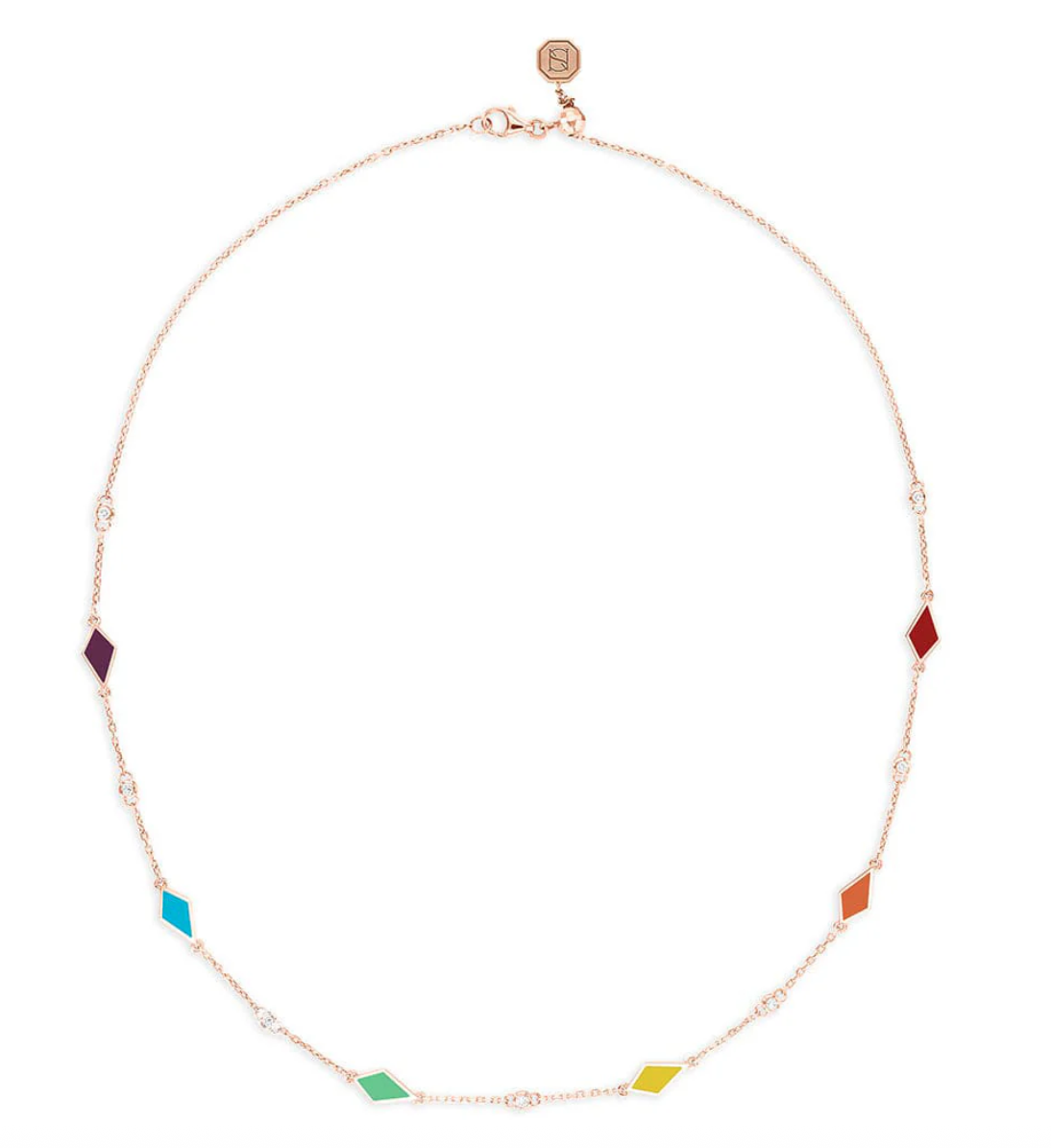 Ras de cou mosaïque en or 18K, diamants et émail multicolore raffiné.