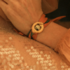 Le bracelet en soie se noue avec un double noeud au poignet , l’ornement est amovible ce qui permet de porter le ruban en soie seul si vous le souhaitez. l’ornement est compatible avec nos rubans en soie de 4 cm et de 2 cm . La différence en très les deux tailles de rubans du volume et des fronces tissé sur le ruban en soie de 4 cm, un effet complètement plat sur un ruban de 2 cm .