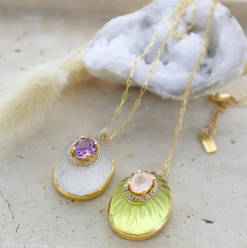 Le sautoir Florencia en laiton plaqué or est orné d’une pierre taillée en Quartz Lemon, d’une pierre facettée en Quartz Rose et d’un zircon, pour un ensemble scintillant et raffiné. Monté sur une chaîne de 70 cm avec 4 cm de rallonge, ce bijou apporte élégance et éclat à toutes vos tenues.
