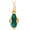 Le sautoir Mady met en valeur une pierre centrale en Agate verte, sublimée par des éclats de Quartz Lemon tout autour. La bélière est délicatement sertie de petits zircons, ajoutant une touche de lumière supplémentaire. Le pendentif est monté sur une chaîne en laiton plaqué or, d’une longueur de 70 cm avec 5 cm de rallonge. Pendentif : 3,4 cm.