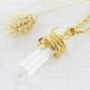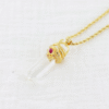Composé d’un pendentif en cristal de roche plaqué or 1 micron, 18 carats serti d’une pierre semi-précieuse racine de rubis et de zircons.